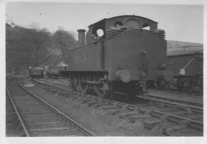 towards the sidings on the High Peak Tour page. A site visitor (thanks Mike) suggests the loco is a Webb Coal Tank engine. However, Pete suggests it was a 'Chopper' tank. My research suggests Pete is more likely to be correct since a Webb 'Coal Tank' had a 0-6-2T configuration and the loco pictured is clearly 2-4-0T. Thanks, again, to will for providing a comparable modern view to the shot directly above. |